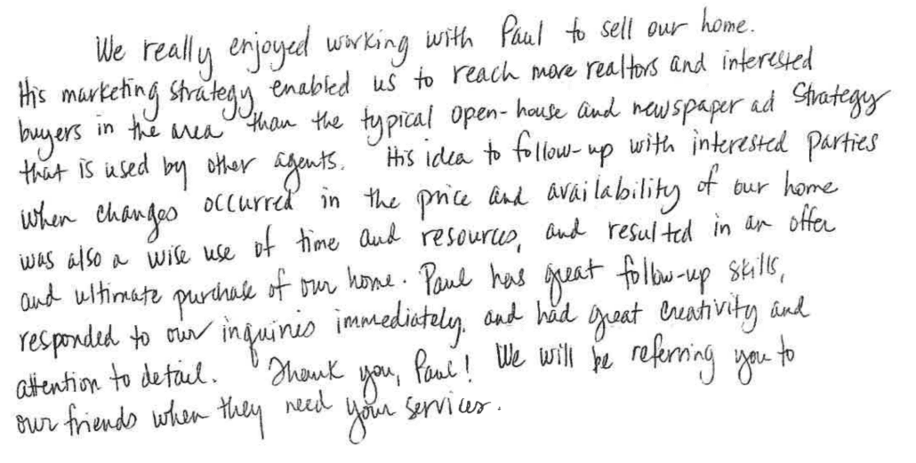 As a successful Realtor® with 25+ years of experience under my belt, you might expect to find an extensive collection of online 5-star reviews singing the praises of Paul Aspelin, Realtor® extraordinaire. But the truth is, you won’t find them all online, or in one place. And there’s a reason for that. I’ve found that truly heartfelt reviews come in many different forms. Online, by snail mail, dropped off in person at my office, or even by phone call. Sincere appreciation comes when it is earned. One cannot dictate the method in which it is received.