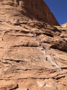 10 – If you want to do some hiking away from the crowds, consider hiking Corona Arch. It’s a scenic hike with views of a large arch at the end. There’s quite an elevation gain at the beginning, and a few challenges like climbing a metal ladder and holding a safety chain along a ledge. We went slow and felt very proud of ourselves for doing the moderate 2.4 mile out and back hike. After our hike, we snagged a spot in the nearby campground under a tree to get some shade and had a picnic lunch. Bring plenty of water, there’s hardly any shade along the trail and it can get hot in the summer.